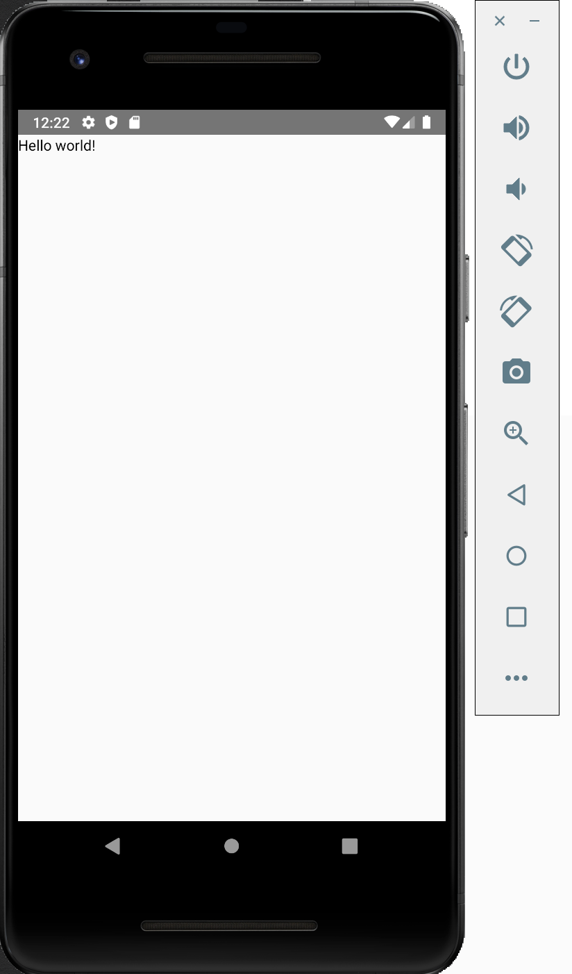 import React from 'react'; import {View, Text} from 'react-native'; const App: () => React$Node = () => { return ( <View> <Text>Hello world!</Text> </View> ); }; export default App;hello world를 작성합니다.
